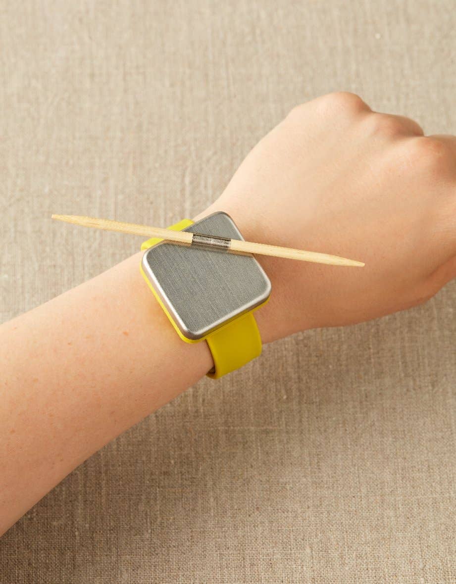-Needles can be used to work cables in any knitting project. -The small needles are also handy for picking up stitches when using the Cocoknits Method of sweater construction. -When not in use, place them on your Maker's Keep magnetic bracelet – the smooth nickel-plated steel band is designed to cling to any magnet.
